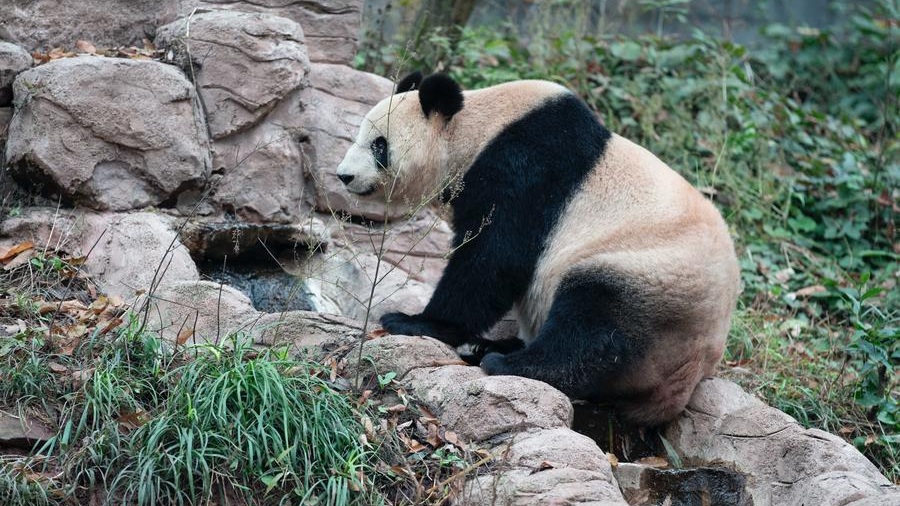 パンダのシャンシャン、座って考え事 中國四川省