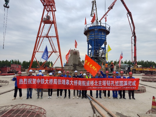 張靖皋長江大橋南航道橋北主塔樁基完成施工