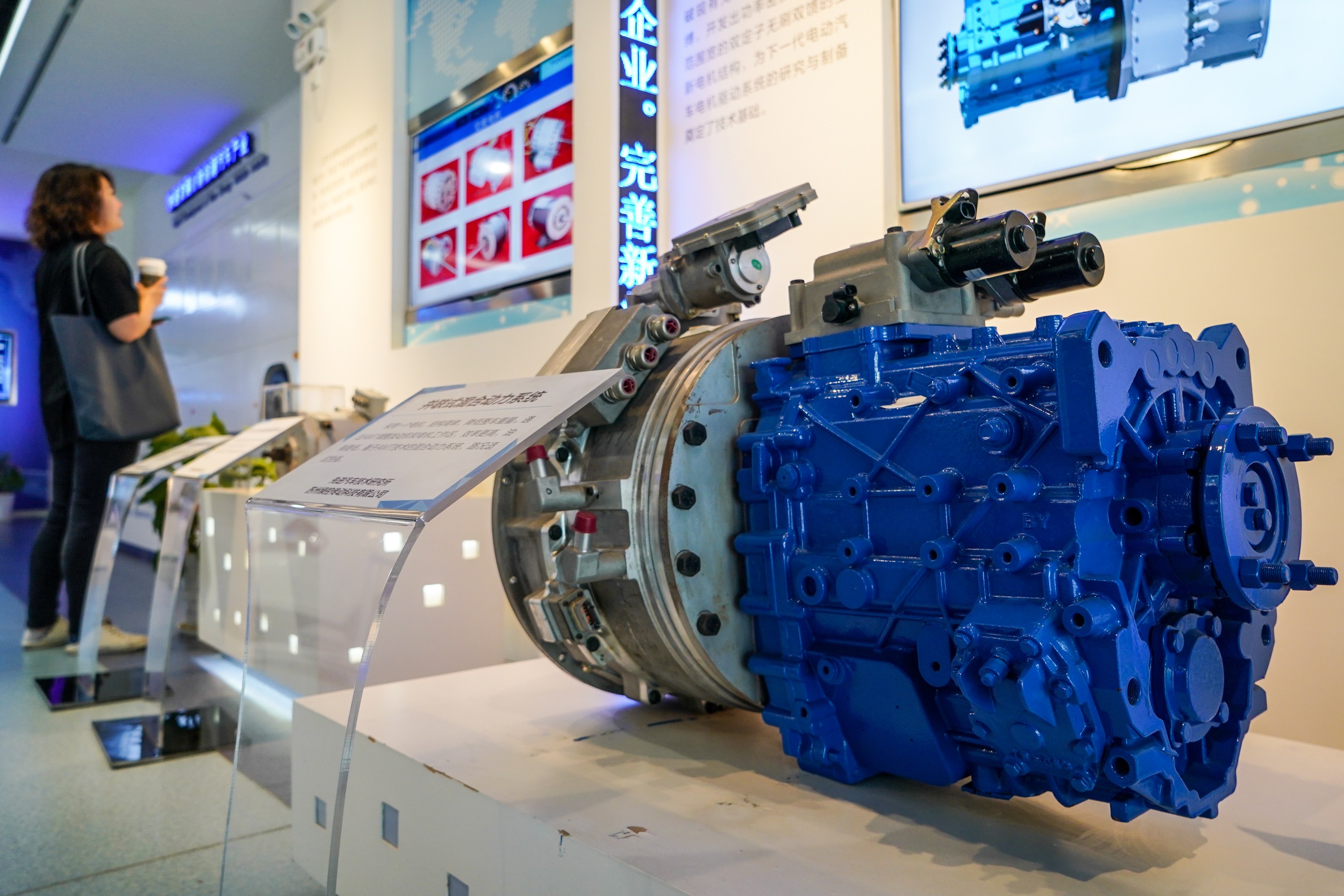 江蘇省産業技術研究院産業創新發展館內展示的汽車並聯式混合動力系統。新華社記者 李博 攝