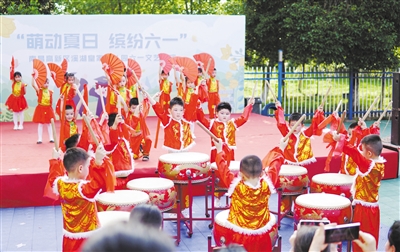 艾溪湖管理處組織各村(社區)開展趣味橫生的“六一”主題活動。圖為孩子們在進行文藝表演。洪觀新聞記者 楊紫韜 攝