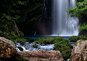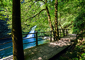 水口距茨坪九公里,以曲溪幽谷、碧潭峰巒和杜鵑林為勝。主要景點有水口河谷、碧漣橋、金牛戲水、百跌泉、鵑島、彩虹瀑等。