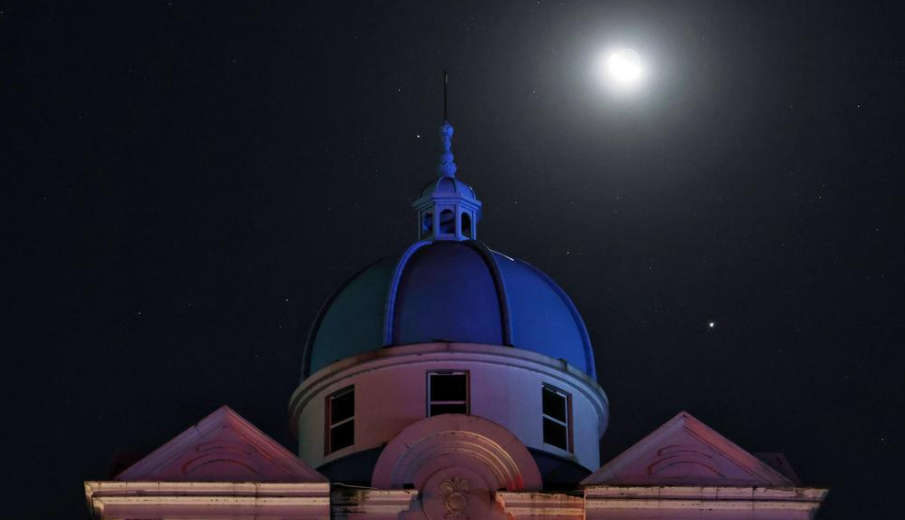 中 헤이룽장 하늘에 펼쳐진 목성과 초승달의 만남
