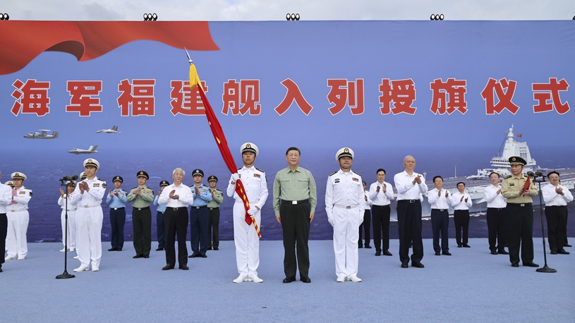 시진핑 주석, 中 첫 전자기 사출형 항공모함 ‘푸젠함’ 취역식 및 군기 수여식 참석
