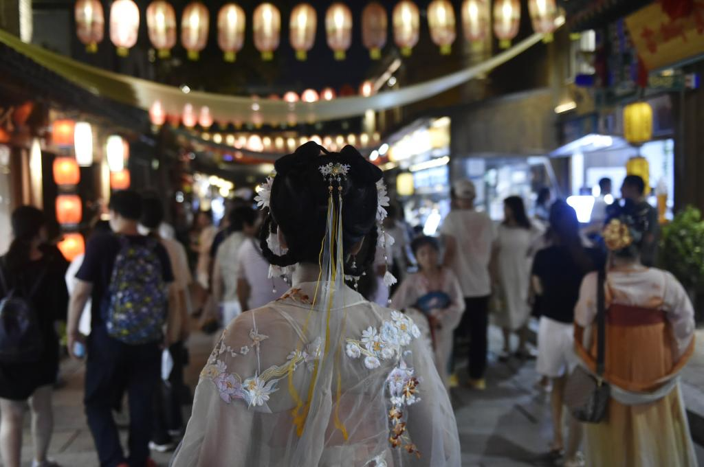 12일 여행객이 중몐그룹 하이커우(海口) 르웨(日月)광장 면세점에서 쇼핑을 즐기고 있다. 2023.7.12