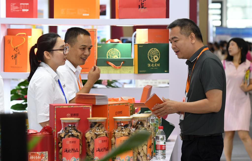 22일 광시 난닝국제컨벤션센터에서 현장 관계자로부터 제품 설명을 듣고 있는 관람객. 2023.7.22