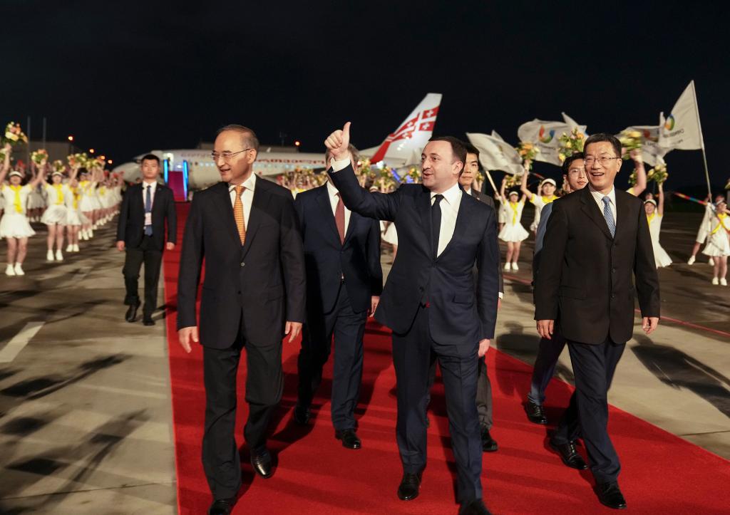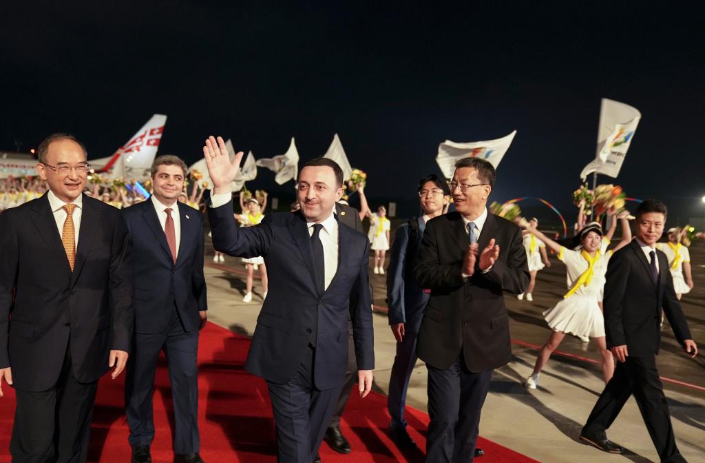 청두 하계 세계대학경기대회(유니버시아드) 개막식 참석차 중국을 방문한 이라클리 가리바슈빌리 조지아 총리가 26일 저녁 쓰촨(四川)성 청두(成都)시에 도착했다.[촬영/신화사 기자 장훙징(江宏景)]