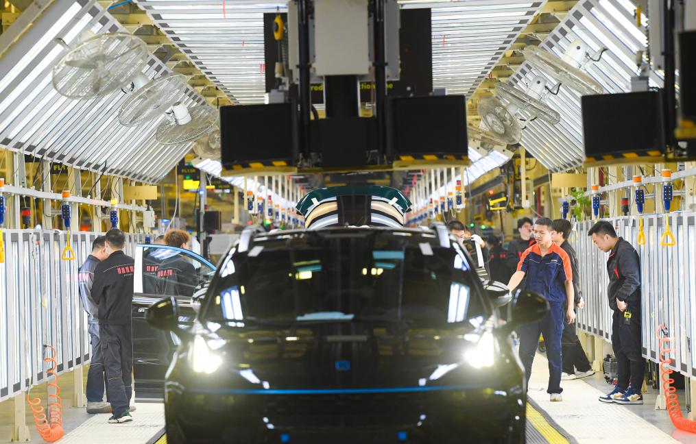 지난 4월 11일 기술자들이 저장(浙江)성 닝보(寧波)시에 위치한 링커(領克∙Lynk&Co)자동차 닝보 위야오(餘姚)공장 내 조립 작업장에서 일하고 있다. (사진/신화통신)