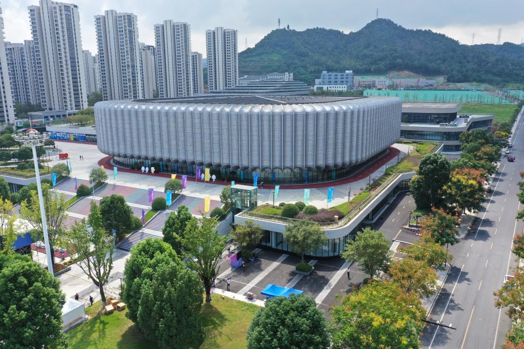 [신화망 항저우 9월19일] 항저우(杭州) 아시안게임의 경기장으로 사용될 린안(臨安)체육문화컨벤션센터 체육관은 '도시의 빛, 동력의 원천'으로 불리는 친환경 건물이다.