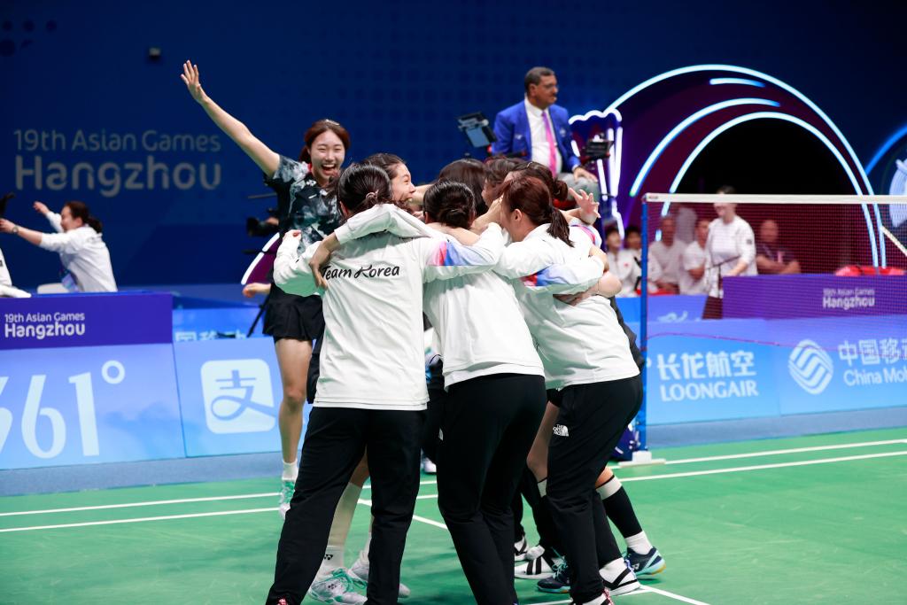 한국 여자 배드민턴 대표팀이 1일 '항저우(杭州) 아시안게임' 배드민턴 여자 단체전 결승에서 중국을 3-0으로 제치고 우승을 차지했다. 이날 승리 후 환호하는 한국 여자 배드민턴 대표 선수들. (사진/신화통신)중국 남자 탁구 판전둥(樊振東)-왕추친(王楚欽)조가 1일 이란을 4-0으로 꺾고 항저우 아시안게임 남자 복식 결승에 올랐다. 이날 경기를 펼치는 판전둥(오른쪽). (사진/신화통신)중국 대표 린원쥔(林文君) 선수가 1일 항저우 아시안게임 여자 카누 1인승 200m 결승에 진출했다. 이날 푸양(富陽)수상스포츠센터에서 힘차게 노를 젓는 린원쥔 선수. (사진/신화통신)지난달 30일 항저우 아시안게임 여자 축구 8강전에서 중국 대표팀이 태국을 4-0으로 제압하고 4강에 진출했다. 중국 선수들이 경기 중 골을 넣고 기뻐하는 모습. (사진/신화통신)항저우 아시안게임 남자 육상 100m 결승에서 셰전예(謝震業·가운데) 선수가 지난달 30일 금메달을 목에 걸고 환하게 웃고 있다. 태국, 말레이시아 선수는 2~3위를 차지했다. (사진/신화통신)지난달 30일 중국 커제(柯潔) 선수(왼쪽)와 한국 신진서 선수가 대국을 펼치고 있다. 한국 대표팀은 이날 열린 항저우 아시안게임 바둑 남자 단체전 4라운드에서 중국을 2-0으로 꺾었다. (사진/신화통신) 원문 출처:신화통신 한국어 뉴스 서비스
