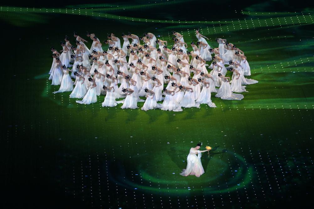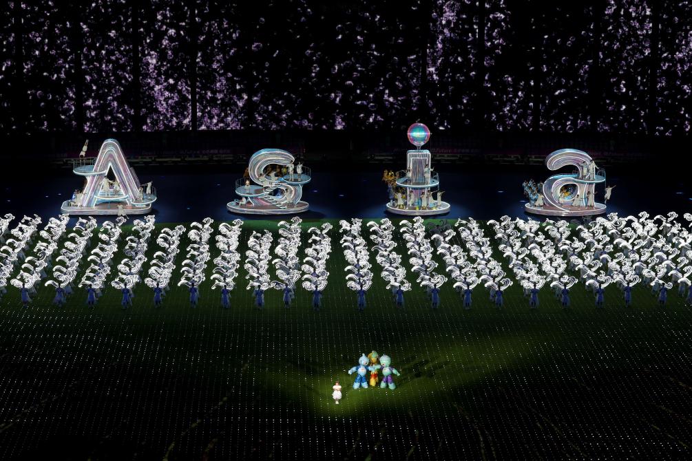 8일(현지시간) 항저우(杭州) 올림픽스포츠센터 스타디움에 열린 폐막식에서 아시안게임 마스코트와 어린이가 공연을 선보이고 있다. (사진/신화통신)8일 아시안게임 폐막식 공연이 한창인 항저우 올림픽스포츠센터 스타디움. (사진/신화통신)8일 연꽃 모양의 조명을 밝힌 항저우 올림픽스포츠센터 스타디움. (사진/신화통신)8일 한 선수가 폐막식 현장에서 항저우 아시안게임 마스코트와 교감하고 있다. (사진/신화통신)8일 각 국가(지역) 선수단이 폐막식에 입장하고 있다. (사진/신화통신)8일 연기자들이 폐막식에서 멋진 무대를 선사하고 있다. (사진/신화통신)8일 연기자들이 폐막식에서 멋진 공연을 펼치고 있다. (사진/신화통신)