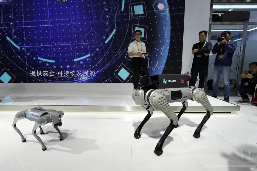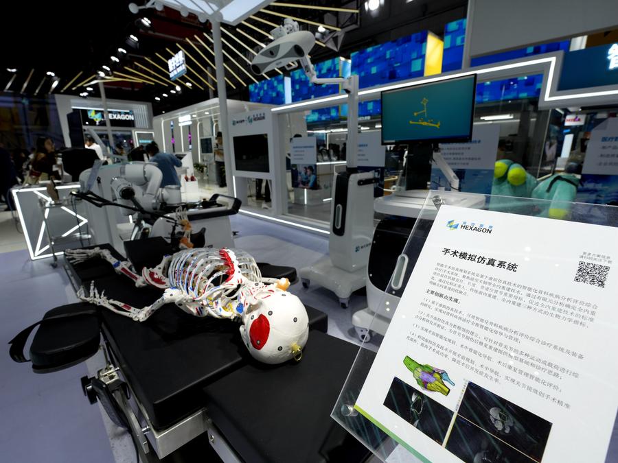 '제6회 중국 국제수입박람회(CIIE)'를 찾은 관람객이 지난 8일 기술장비 전시구역 지멘스 부스에서 식물 재배기를 살펴보고 있다. (사진/신화통신)'제6회 CIIE'의 직원이 9일 텍사스 인스트루먼트 부스에서 손짓으로 로봇팔을 조종하고 있다. (사진/신화통신)'제6회 CIIE'를 찾은 관람객들이 8일 자동차 전시구역 모비스 부스에서 자율주행 콘셉트카를 구경하고 있다. (사진/신화통신)스웨덴 기업 헥사곤(hexagon)이 7일 '제6회 CIIE' 기술장비 전시구역에서 로봇 개를 선보이고 있다. (사진/신화통신)7일 헥사곤이 '제6회 CIIE' 기술장비 전시구역에 전시한 수술 시뮬레이션 시스템. (사진/신화통신)