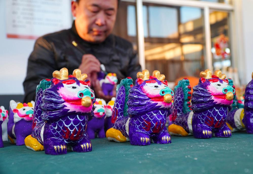 춘절(春節·음력설)이 다가오자 녜자좡촌에서는 주민이 용 모양의 흙인형을 만들어 여러 시장에 공급하고 있다. 오랜 흙인형 제작 전통을 갖고 있는 녜자좡촌의 제작 기술은 지난 2008년 국가급 무형문화유산으로 등재됐다. 2024.1.24