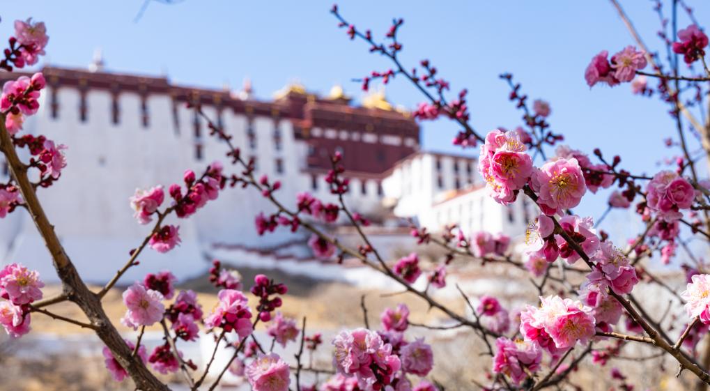 [신화망 라싸 3월15일]14일 시짱(西藏) 라싸(拉薩)시 쭝지아오루캉(宗角祿康) 공원에서 찍은 봄꽃.