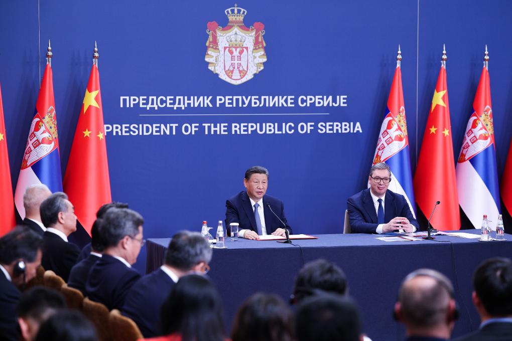 8일 낮(현지시간) 시진핑 주석은 베오그라드에서 알렉산다르 부치치 세르비아 대통령과 회담 후 공동 기자회견을 가졌다. [촬영/신화사 기자 황징원(黃景文)]