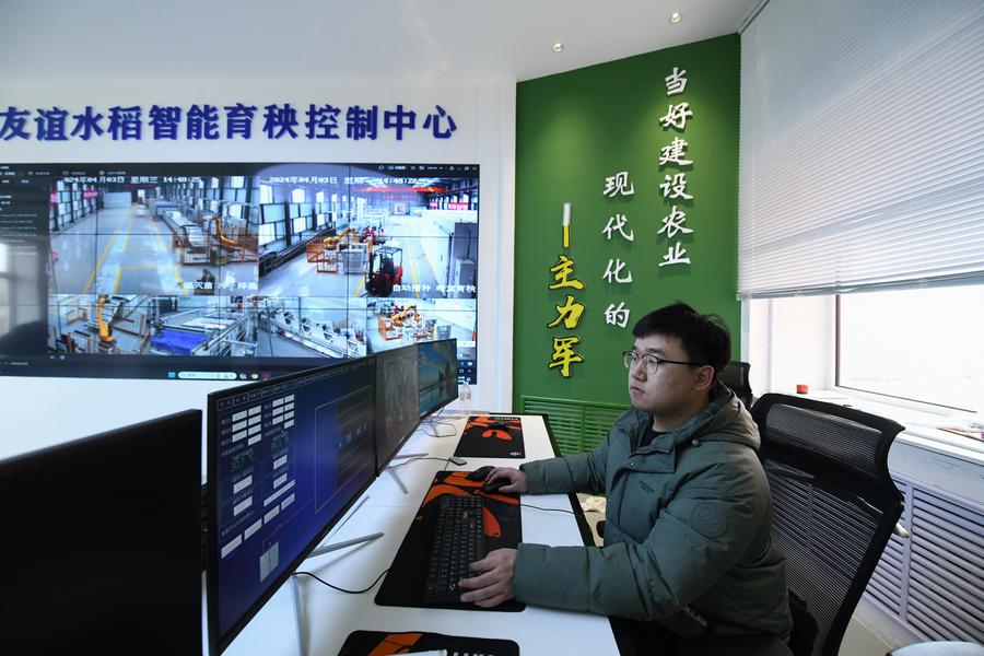 장쑤(江蘇)성 화이안(淮安)시에 위치한 차이미허(柴米河)박사농원에는 디지털 트윈 시스템 전광판이 있다. 72구 규격의 홍고추 모종 재배를 원하는 고객이 있다는 알림 메시지가 뜨자 직원이 AIoT(인공지능융합기술) 농사 작업 미니 프로그램에 주문 내역을 입력한다. 이 프로그램은 제품 표준 요건에 따라 홍고추 모종의 비료 배합 모델을 자동으로 조정한다.
