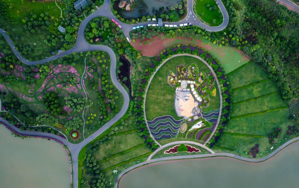 [신화망 미러 6월14일] 윈난(雲南)성 타이핑후(太平湖)삼림공원 내 조성된 예술 경관 '태평공주(太平公主)'를 13일 드론으로 내려다봤다.
