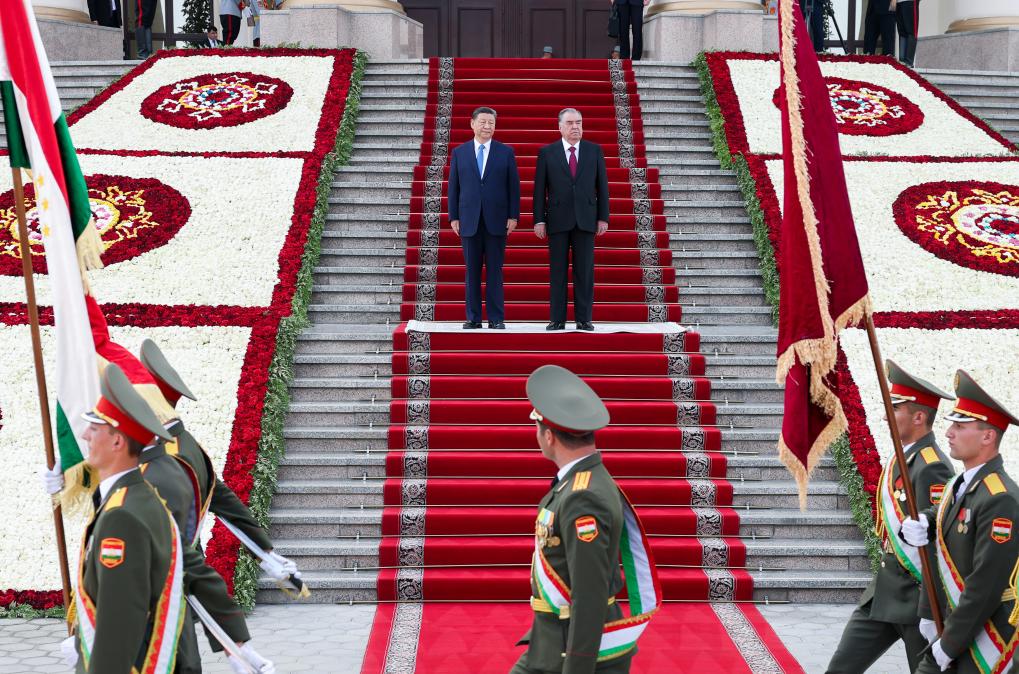 시진핑(習近平) 중국 국가주석이 5일 오후(현지시간) 두샨베 대통령 관저에서 에모말리 라흐몬 타지키스탄 대통령과 회담했다.pagebreak