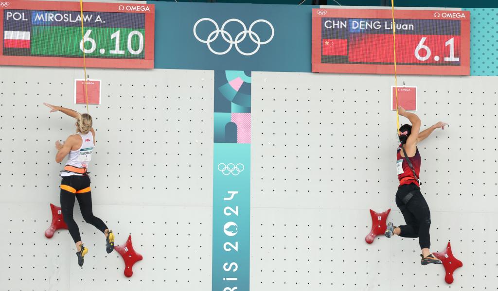 [신화망 파리 8월8일] 중국의 덩리쥐안(鄧麗娟)이7일(현지시간) 열린 파리올림픽 스포츠클라이밍 여자 스피드 결승에서 은메달을 목에 걸었다.pagebreak
