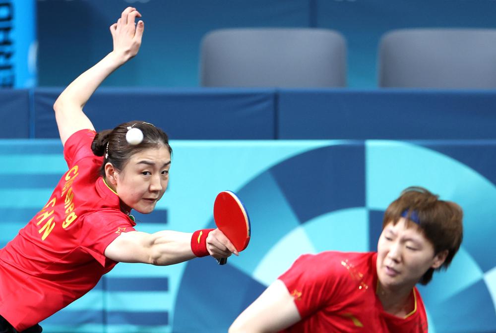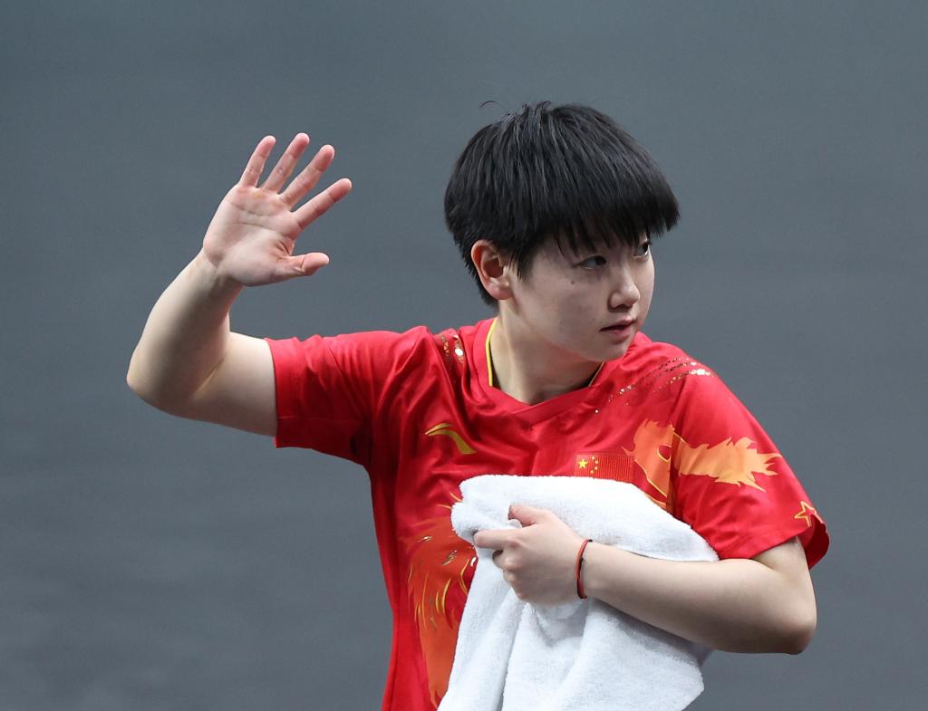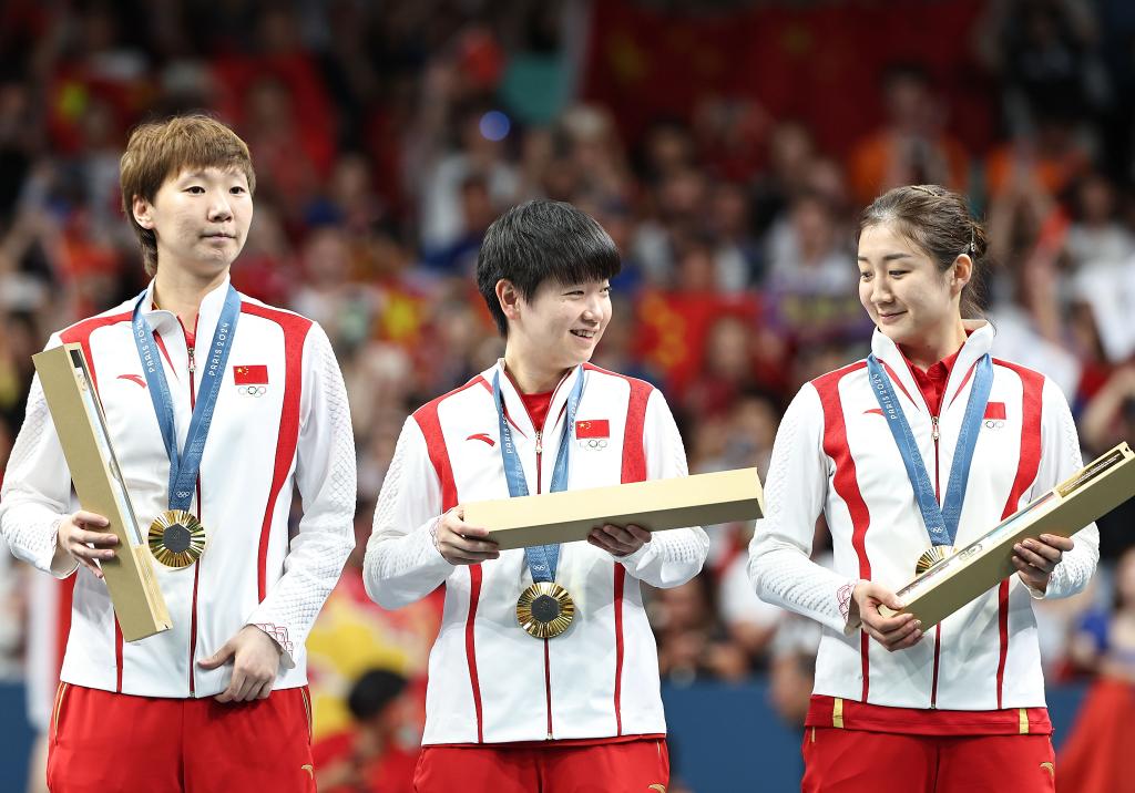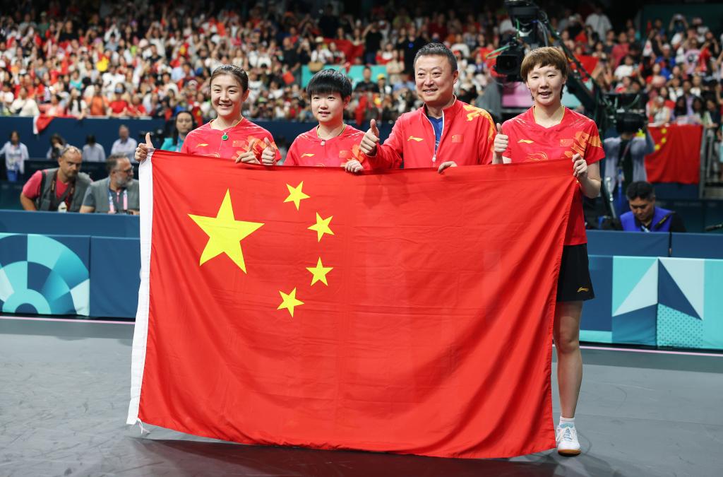 [신화망 파리 8월11일]중국이 10일(현지시간) 열린 파리올림픽 탁구 여자 단체 금메달 결정전에서 일본을 3:0으로 꺾고 금메달을 목에 걸었다.pagebreak