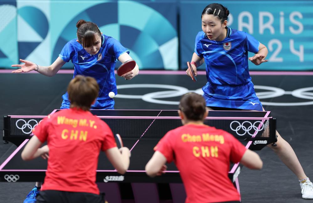 중국이 10일(현지시간) 열린 파리올림픽 탁구 여자 단체 금메달 결정전에서 일본을 3:0으로 꺾고 금메달을 목에 걸었다.pagebreak