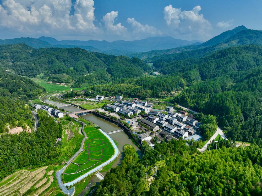 11일 드론으로 내려다본 싼밍시 타이닝(泰寧)현 충지(崇際)촌. 2024.8.12