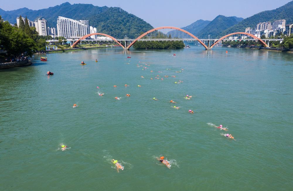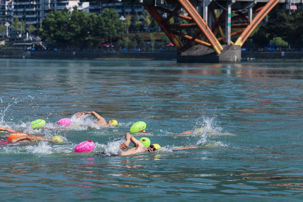 '2024 중국·젠더(建德) 17℃ 신안(新安)강 여름철 겨울 수영 국제 챌린저 투어'가 이날 열렸다. 신안강 젠더 구간의 수온은 여름에도 12~17도를 유지해 '겨울 수영'을 체험할 수 있는 조건을 마련했다는 평가다. 2024.8.25