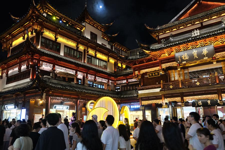 중추절 연휴 기간, 많은 사람들이 한푸(漢服) 차림으로 예원(豫園)과 진차오8눙(今潮8弄) 등 상하이 랜드마크를 찾았다.