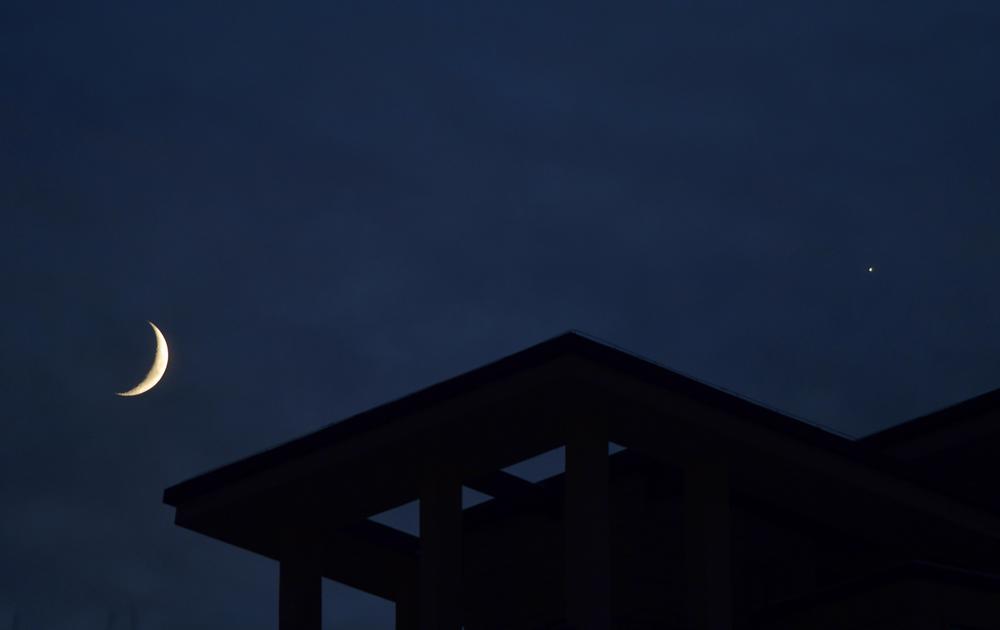 금성과 달이 이날 다시 나란히 밤하늘에 나타났다. 천문학 전문가는 전달에 비해 이번 금성과 달의 높이가 지면에서 더 높고 관측 시간도 더 길다고 전했다. 2024.12.5