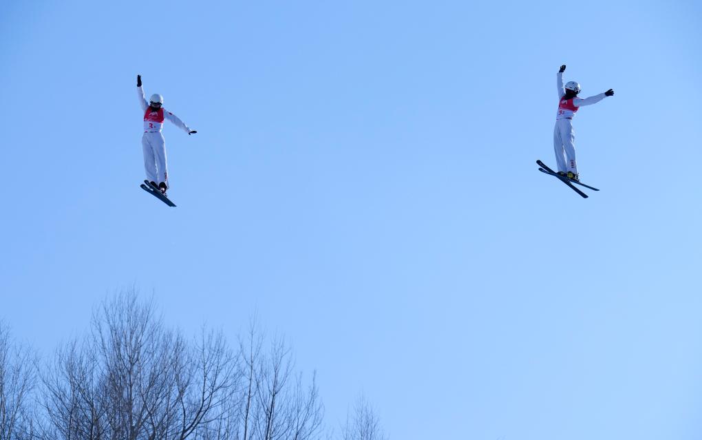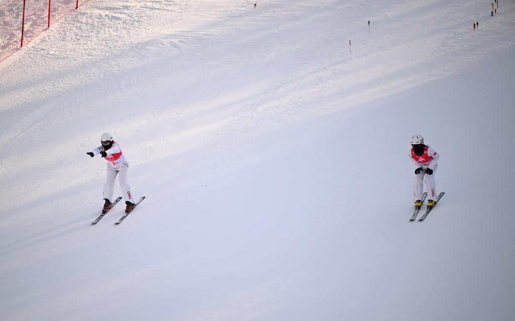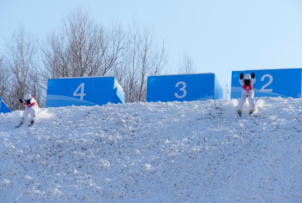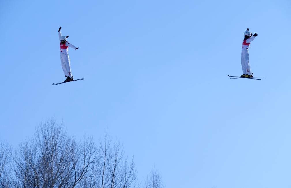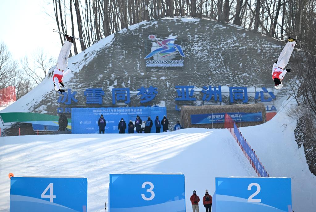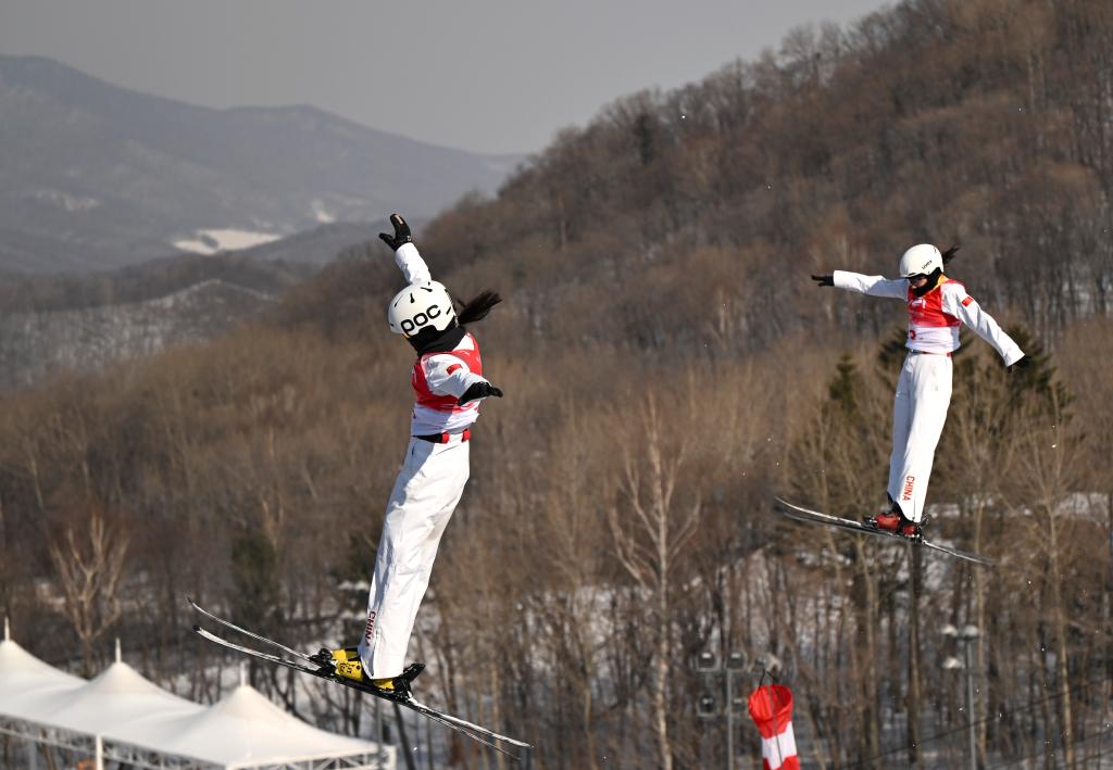 제9회 동계 아시안게임 프리스타일 스키 여자 에어리얼 싱크로 결선이 11일 야부리에서 열렸다. 중국팀의 펑쥔시(馮俊熙)/왕쉐(王雪) 선수가 금메달을 땄다.pagebreak