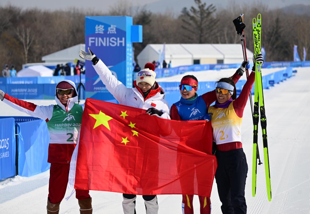 [신화망 야부리 2월13일]제9회 동계 아시안게임 크로스컨트리 스키 여자 4x5km 계주 결선이 12일 야부리에서 진행됐다. 중국팀이 금메달을 차지했다.pagebreak