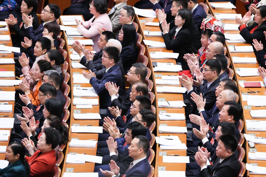 [신화망 베이징 3월5일] 제14기 전국인민대표대회(전인대) 제3차 회의가 5일 오전 9시(현지시간) 베이징 인민대회당에서 열렸다. 회의에서는 리창(李強) 중국 국무원 총리가 정부업무보고를 발표했다.