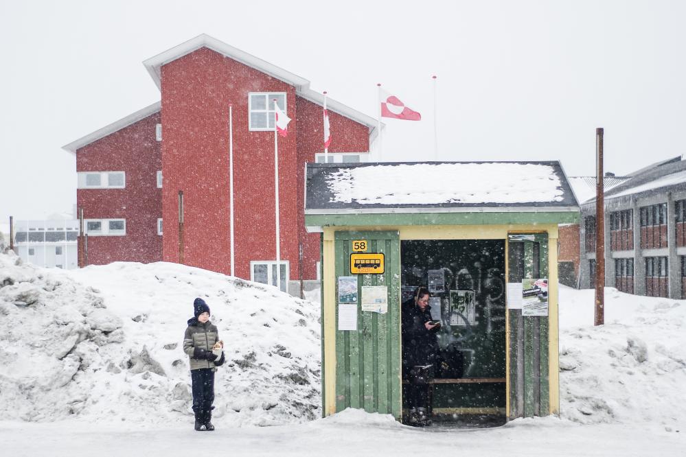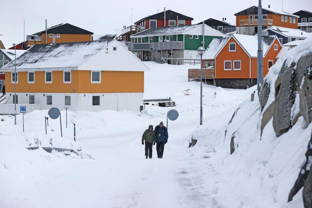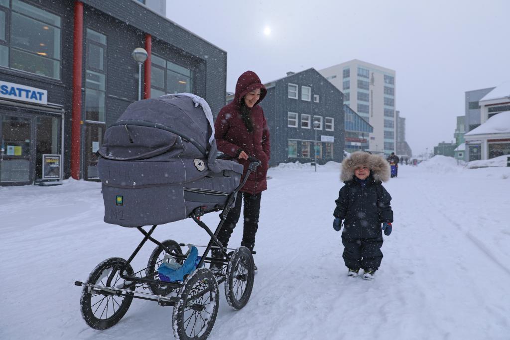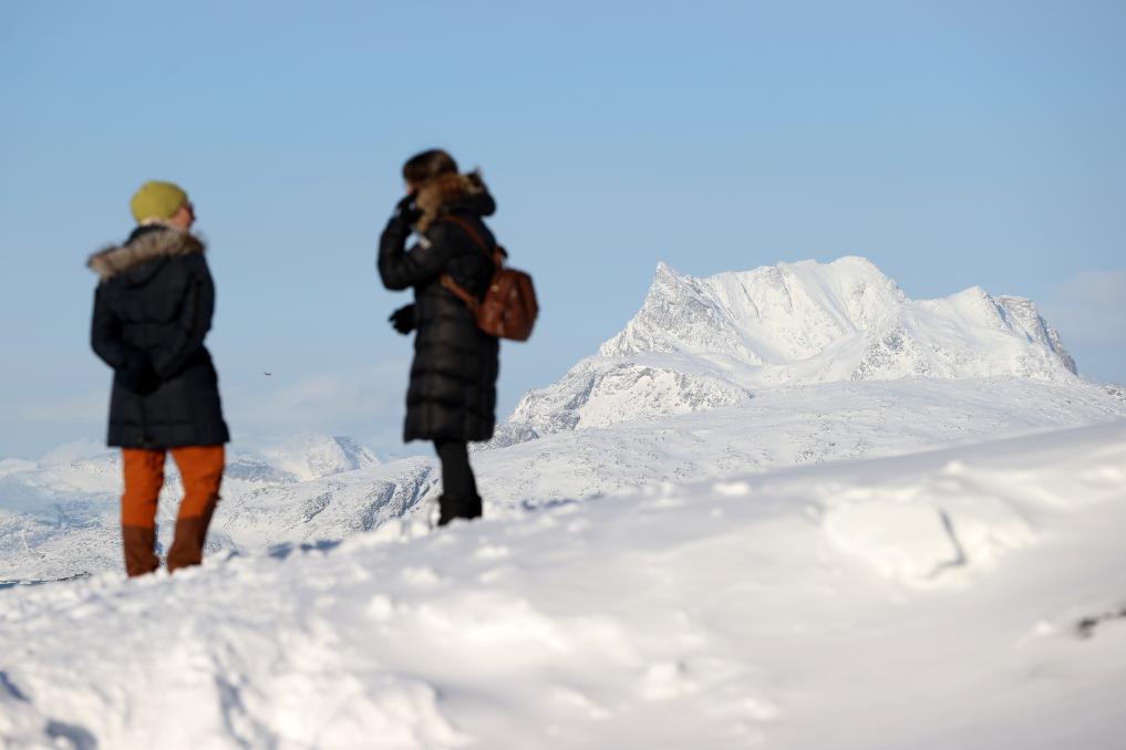 20일(현지시간) 여성 두 명이 덴마크 자치령 그린란드의 수도 누크를 여행하고 있다.