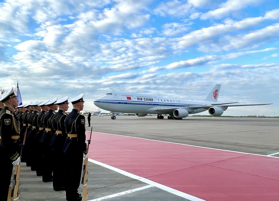 러시아 측은 공항에서 성대한 환영식을 거행했다. 군악대가 중·러 양국의 국가를 연주했다. 시 주석은 의장대를 사열하고 분열식을 지켜봤다.