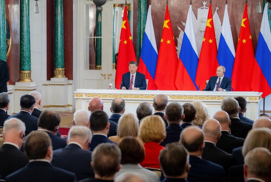시 주석이 차를 타고 공항에서 숙소로 이동하는 도중 현지 주민, 중국 기업 및 유학생 대표들이 거리 양쪽에 모여 "시 주석의 러시아 방문을 열렬히 환영합니다" 등의 붉은 현수막을 들고 중·러 양국 국기를 흔들며 시 주석의 방문을 열렬히 환영했다.