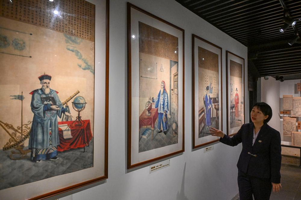 17일 쉬광치(徐光啟)기념관 관계자가 초상화를 소개하고 있다.