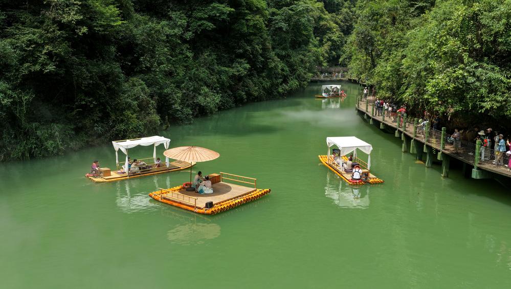 과거 싼리청 일대는 오랜 기간 빈곤에 시달려 왔으며 외부에 잘 알려지지 않은 지역이었다. 하지만 지금은 늠군 문화를 융합해 특색 있는 문화관광 자원을 발굴하면서 갈수록 많은 중국 및 해외 관광객이 이곳을 찾아 피서를 즐기고 있다. 또한 독특한 카르스트 지형을 바탕으로 중국 내 저고도 스포츠 애호가들에게 핫플레이스로 각광받고 있다.