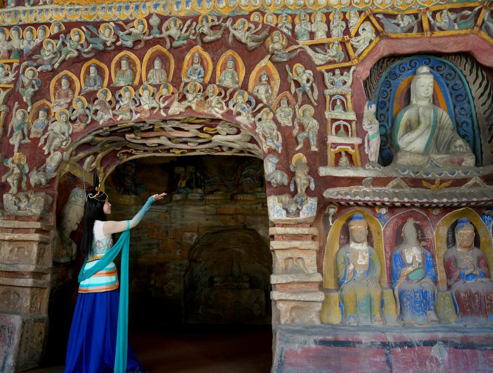 [신화망 상하이 10월10일] '운강(雲岡)석굴 예술 특별전'이 9일 상하이시 훙커우(虹口)구의 취칸(趣看)미술관에서 개막했다. 운강석굴 문물, 3D로 복원한 모형 동굴, 당대 예술 작품을 감상할 수 있을 뿐만 아니라 가상현실(VR) 인터랙션 체험이 가능한 이번 전시회는 10일 일반 관람을 시작으로 내년 3월 26일까지 이어진다.