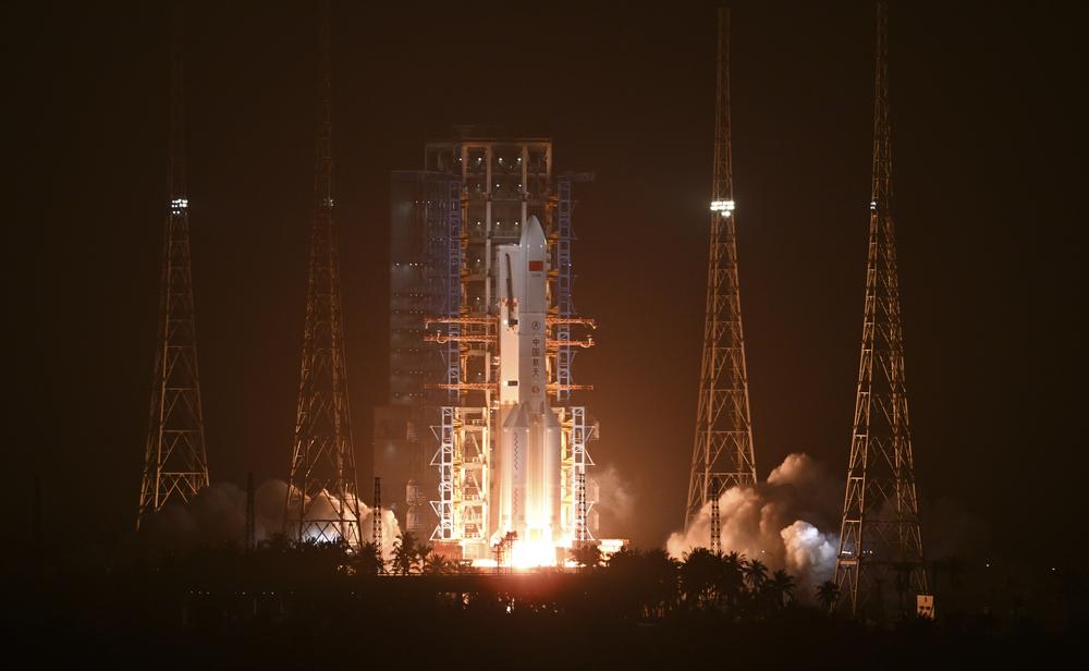 20일 화염 내뿜으며 발사되는 창정(長徵) 5호 운반로켓.