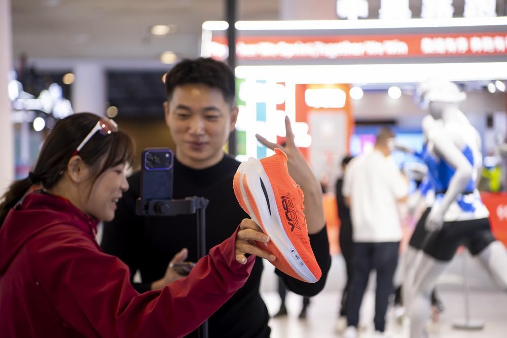 이커머스로 운동화 판매하는 스포츠용품 기업 관계자-Xinhua