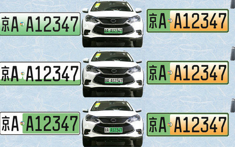 신에너지 자동차 번호판은 녹색 계열로 소형차의 경우 녹색, 대형차의 경우 녹색과 노란색이다.
