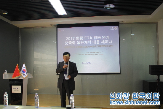 중국은 올해 7월 1일부터 전국 통관 일체화 개혁을 실시하기 시작했다. 중한기업이 이 새로운 정책을 조속히 이해하고 중한 FTA를 잘 활용하도록 하기 위해 한국무역투자진흥공사와 주 중국 한국대사관이 공동으로 이번 세미나를 주최했다. 한국 및 중국 기업의 관련 인사들이 참석했다.