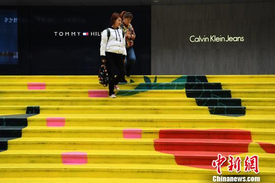 충칭 거리에 나타난 컬러 계단 눈길 끌어