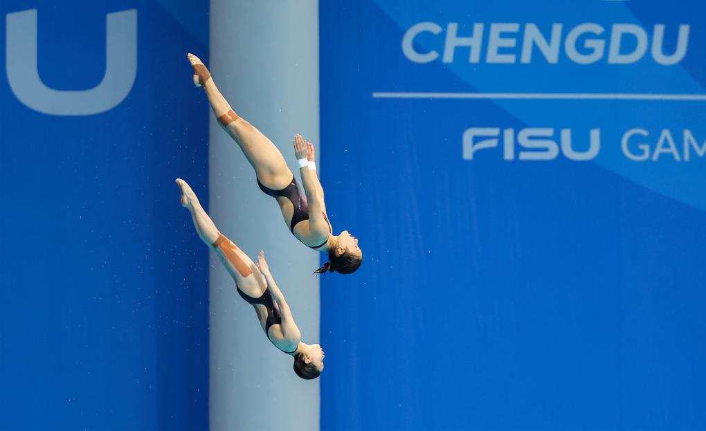 지난달 31일 쓰촨(四川)성 청두(成都)시에서 열린 FISU 세계대학경기대회(유니버시아드) 남자배구 예선 C조 4차전에서 중국이 우크라이나를 3-0으로 꺾었다. 중국 대표팀 장징인(張景胤∙위) 선수가 스파이크를 날리고 있다. (사진/신화통신)지난달 31일 열린 FISU 경기대회 리듬체조 단체전 결승에서 중국팀이 27.750점으로 은메달을 차지했다. 이날 경기를 펼치고 있는 중국 리듬체조 선수들. (사진/신화통신)지난달 31일 열린 FISU 경기대회 다이빙 10m 플랫폼 여자 결승전에서 중국팀 장자치(張家齊·아래)·장민제(掌敏潔) 선수가 349.08점으로 우승을 거머쥐었다. 장자치·장민제 선수가 다이빙대에서 뛰어내리고 있다. (사진/신화통신)지난달 31일 열린 FISU 경기대회 탁구 8강에서 중국팀이 3-0으로 스위스를 제치고 4강 진출에 성공했다. 중국팀 선수 저우카이(周愷)가 서브를 넣는 모습. (사진/신화통신)지난달 31일 열린 FISU 경기대회 유도 78㎏ 이상급 결승전에서 중국 선수 자춘디(賈春迪)가 한국 선수 박샛별을 이기고 금메달을 목에 걸었다. 자춘디(왼쪽) 선수와 박샛별 선수가 경기를 펼치는 모습. (사진/신화통신)