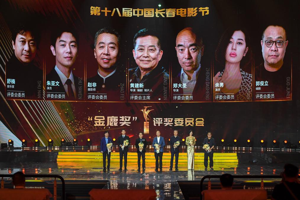 [신화망 창춘 8월29일] 28일 '제18회 중국 창춘(長春)영화제' 개막식 무대에 선 심사위원들.
