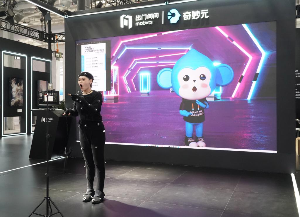[신화망 베이징 9월4일]3일 '2023 중국국제서비스무역교역회(CIFTIS)'의 개최장소 중 한 곳인 서우강위안(首鋼園)에서 3D 버추얼 휴먼이 라이브 방송을 진행하고 있다.