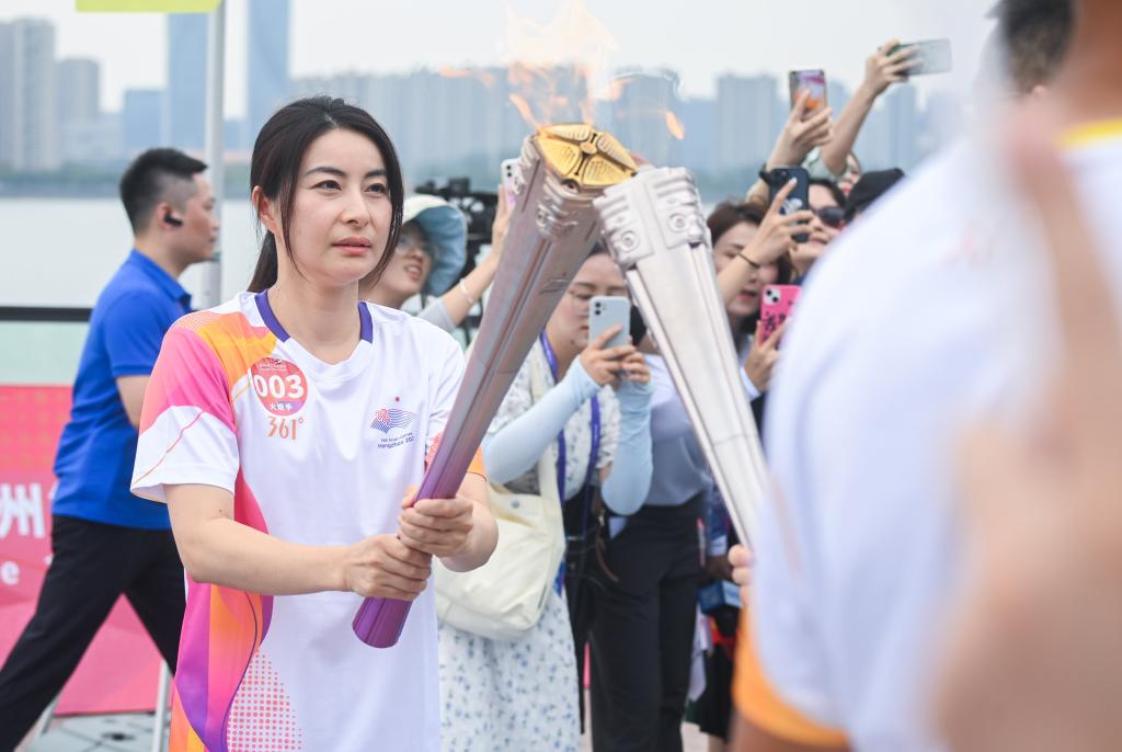 [신화망 항저우 9월20일] 20일 성화 봉송 주자인 궈징징(郭晶晶)이 성화 봉송 중이다.