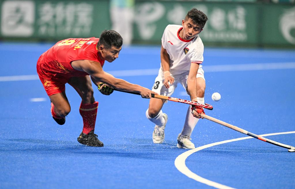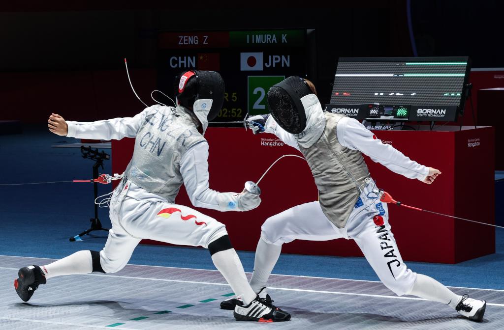 27일 한국의 서희주가 검술 경기를 펼치고 있다. 이날 항저우 아시안게임 우슈(武術) 여자 검술창술 전능 결승이 항저우 샤오산과리(蕭山瓜瀝) 문화스포츠센터에서 열렸다. (사진/신화통신)27일(현지시간) 중국 e스포츠 선수단이 경기를 펼치고 있다. 이날 항저우 e스포츠 센터에서 항저우 아시안게임 리그 오브 레전드 종목 8강전 경기가 열렸다. 중국팀이 마카오팀을 2대 0으로 꺾고 4강에 올랐다. (사진/신화통신)27일 중국의 가오진메이(高金梅)가 경기 중이다. 이날 항저우 푸양(富陽) 인후(銀湖)스포츠센터에서 열린 항저우 아시안게임 사격 여자 스키트 경기에서 중국팀이 총점 348점으로 은메달을 목에 걸었다. (사진/신화통신)27일 중국의 쩡자오란(曾昭然·왼쪽)이 일본의 이이무라 카즈키를 상대하고 있다. 이날 항저우 아시안게임 펜싱 남자 플뢰레 단체전 4강 경기에서, 중국이 45대 44로 일본을 이기고 결승에 올랐다. (사진/신화통신)27일 중국의 리루이쉬안(李瑞軒·앞)이 우즈베키스탄 선수와 겨루고 있다. 이날 항저우 아시안게임 유도 혼성단체전 4강전에서 중국은 우즈베키스탄에 패했다. (사진/신화통신)27일 중국의 비쿤(畢焜)이 연습선으로 돌아오고 있다. 이날 항저우 아시안게임 윈드서핑 iQFoil 종목 경기에서 중국 선수 비쿤이 금메달을 차지했다. (사진/신화통신)26일 중국의 어원후이(鄂文慧·왼쪽)가 인도네시아 선수와 공을 다투고 있다. 이날 항저우 아시안게임 남자 필드 하키 예선 B조 경기에서 중국이 인도네시아를 상대로 경기를 펼쳐 5대 1로 승리를 거머줬다. (사진/신화통신)