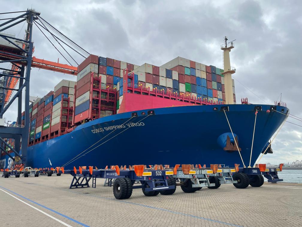유럽에서 세 번째로 큰 컨테이너 항구인 이곳에 24일(현지시간) 중국 해운기업 코스코 해운(COSCO SHIPPING∙中遠海運)의 '버고(VIrgo∙처녀자리)'호가 정박했다. 길이 약 400m, 너비 약 60m에 이르는 2만TEU급 초대형 컨테이너선으로 국제 항로를 운항한다.