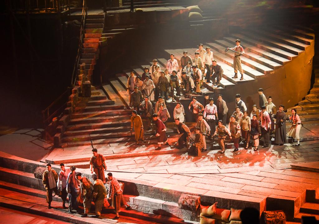 [신화망 충칭 10월5일] 주황색 조명이 천천히 비추자, 중절모를 쓴 배우들이 문 앞에 서서 먼 곳을 바라본다. 몰입형 연극인 '우치장저우(霧起江州)'의 마지막 장면은 관객들에게 긴 여운을 남긴다.