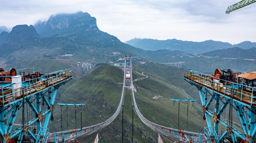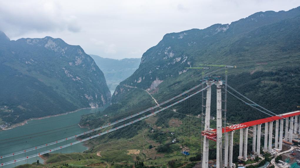 건설 중인 나칭고속도로 짱커(牂牁)강 대교의 모습을 11일 드론으로 내려다봤다. 2023.10.11
